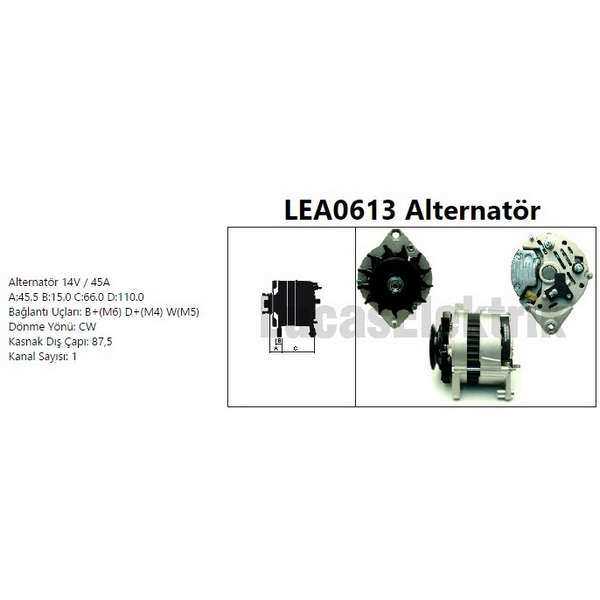 LEA0613 ALTERNATOR 14V/45A FIAT 131 1.3, 1.4, 1.6, 2.0,ARGENTA – FSO – SEAT MARBELLA 0.9KAT, 0.9